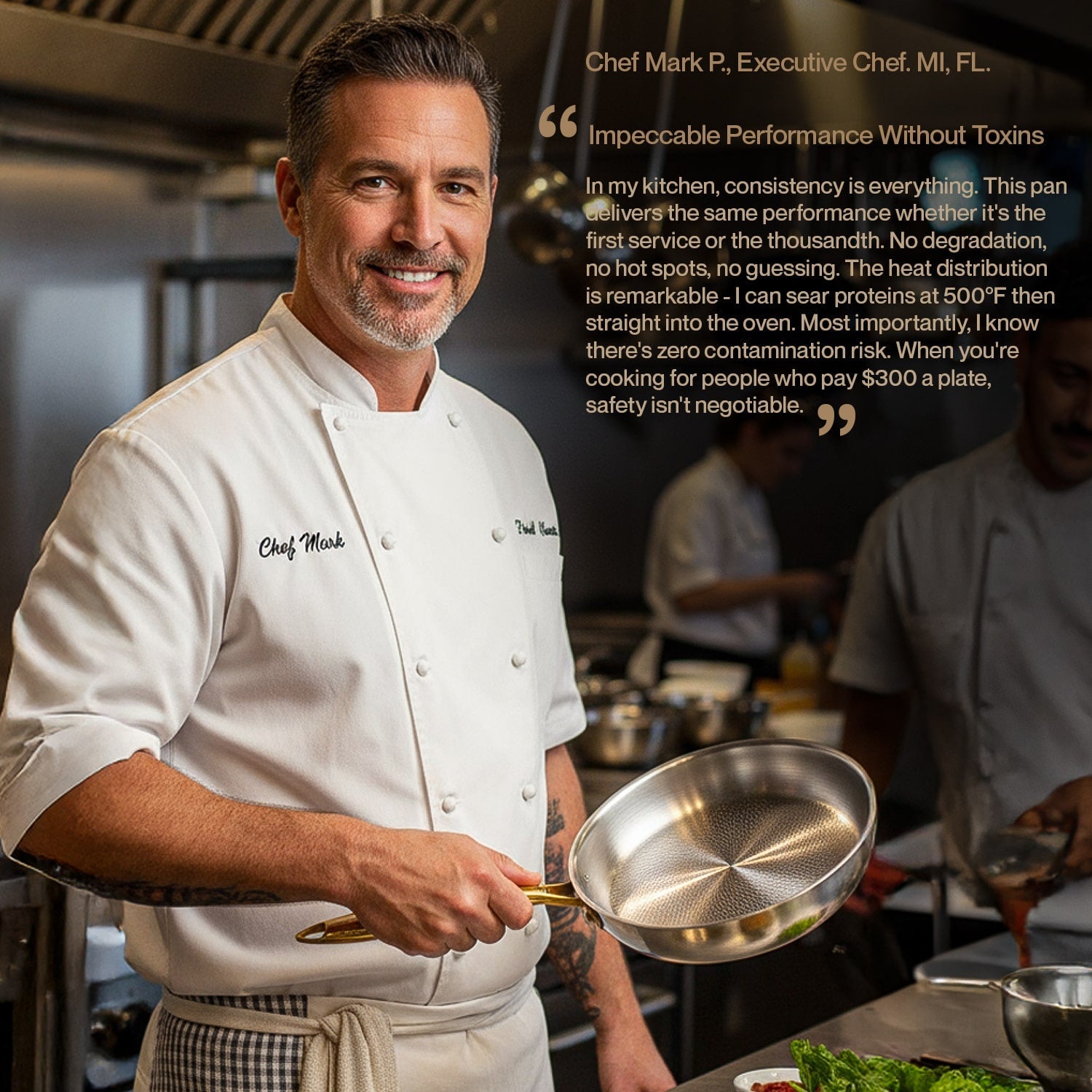 Contrairement à d’autres matériaux, le titane ne réagit pas avec les aliments, ne libère pas de particules nocives et ne se dégrade pas avec le temps. C’est donc le choix ultime pour la préparation des aliments.